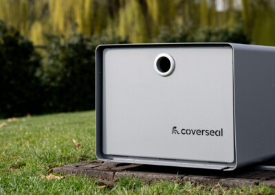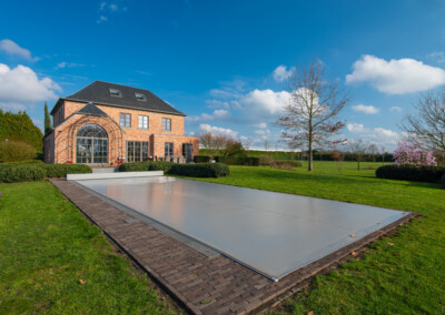 Their choice fell on a Coverseal Automatic, discreetly integrated into the outdoor layout. Its finish, in a dust grey shade, echoes the window frames of the house and harmonizes with the materials surrounding the pool.