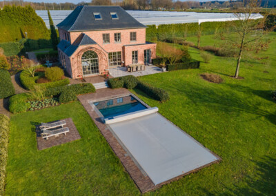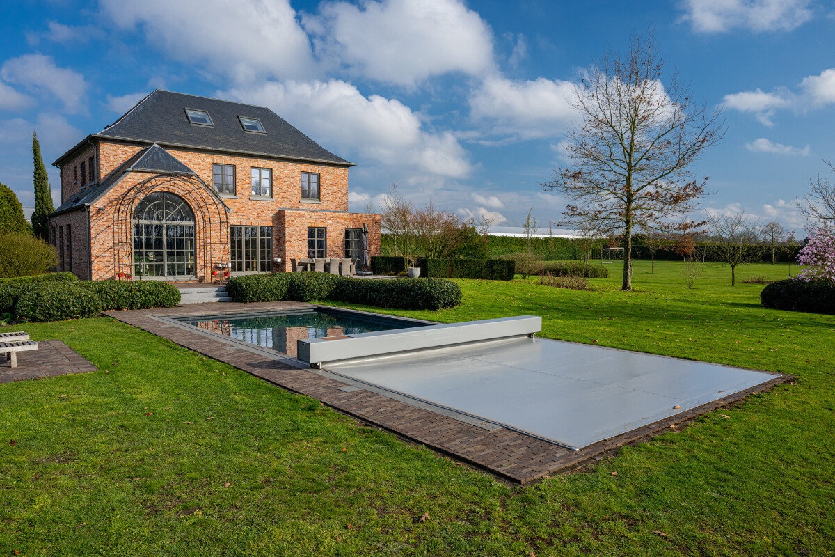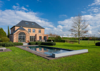In Belgium, in the heart of the Antwerp region, Sophie and Marc live in an open environment, where nature generously surrounds their property, close to their nursery. Around the house, the garden unfolds between open spaces and carefully maintained plantings. The pool blends in naturally, framed by dense vegetation that enhances every viewpoint.