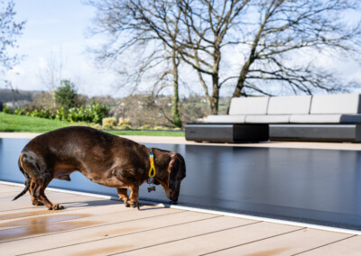 In einer so offenen Umgebung lag die Priorität von Camille und Julien vor allem auf einer sicheren Absicherung des Pools, um den Alltag unbeschwert genießen zu können. Da ihre beiden Hunde sich frei rund um das Haus bewegen, war es wichtig, jedes Risiko zu vermeiden, ohne ständig wachsam sein zu müssen.